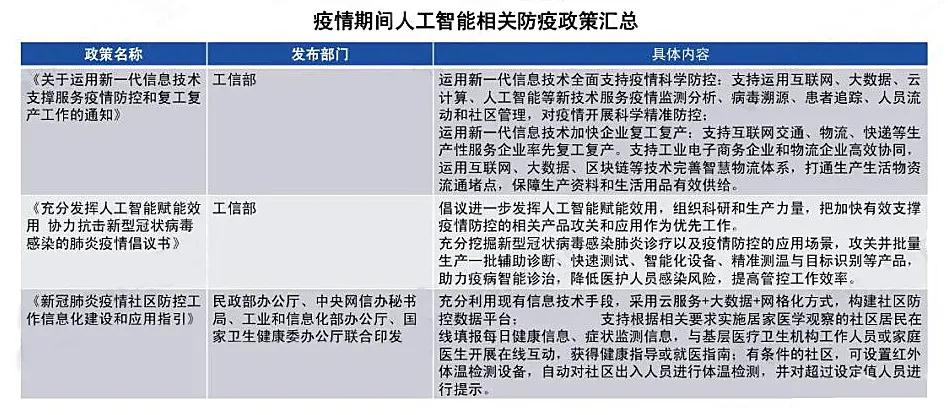 自2020年新冠肺炎疫情发生以来,“人工智能战疫”成为中国抗击疫情的一支“硬核”科技力量。疫情期间,工信部等部门发布多项有关运用人工智能技术进行疫情防控的政策。