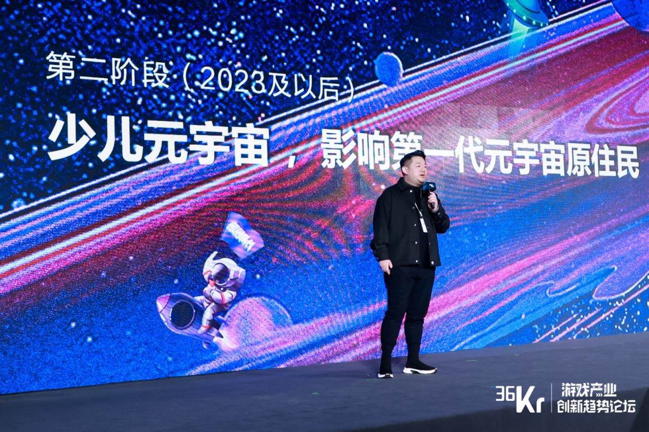 第二阶段最快到2023年,今年VR新瓶装旧酒,很多人开始关注这个赛道,至少超级队长还是认为消费级产品需要两到三年时间才会比较成熟。等到2023年以后,我们认为消费品阶段会到达更加成熟的阶段,才会有一个少儿元宇宙的雏形,会真正影响第一代元宇宙的原住民,会成为社交属性极重的成长伙伴,更像平时看到的小天才儿童手表、步步高点读机,属于消费级的儿童智能学习终端。儿童陪伴成长的伙伴,更多是有一定社区属性,就是大家认为元宇宙属性的东西,从技术上也会用到更成熟的6DOF的技术,使小朋友拥有更多自己展示的部分,自己可以利用VR编辑去生产沉浸式的内容,分享到社区,去做一些具有想象力和创造的内容。像刚刚一个嘉宾提到,成为一个实现我的梦想的场景,可以快速形成作品,形成场景,并且作品跟场景能够被保护,被传播,被加密的一个生活方式。