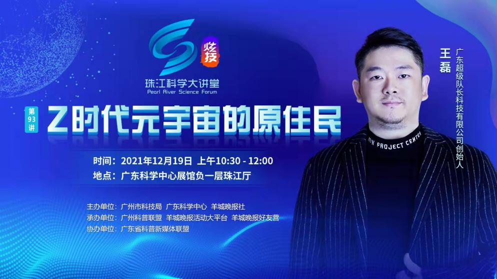 为加强科普资源的宣传与推广,满足市民日益增长的科普需求,珠江科学大讲堂针对元宇宙(Metaverse)特邀请广东超级队长科技有限公司创始人、CEO——王磊带来《Z时代元宇宙的原住民》讲座。