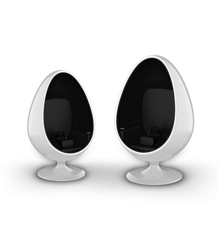 VR互动椅是一台蛋型、轻交互的VR沉浸观影体验设备,蛋椅可实现360°自由旋转;设备利用VR虚拟现实技术,将传统平面的图片、文字、视频升级为720°全景、3D的数字模拟环境中,以第一人称的视角自主观看和交互体验。