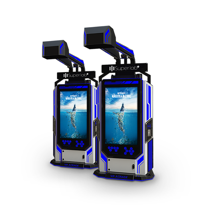 无人值守自助机,产品吊臂可实现折叠,方便运输。大屏触控,体验内容自主选择;启动后头显可自动降落,关闭自动上升,舍去人工管理。